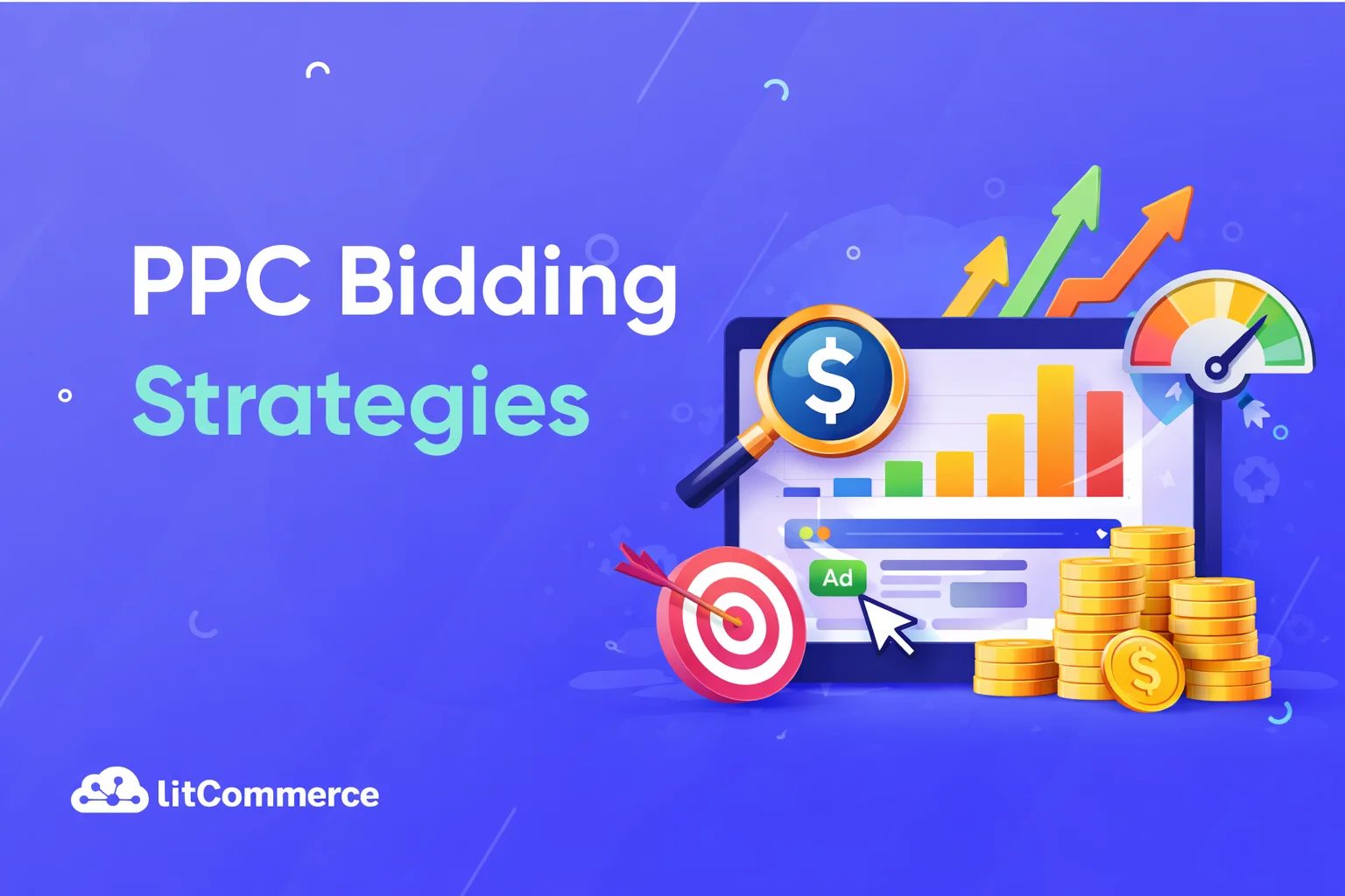 PPC bidding strategies involve choosing how to pay for ads, balancing manual control with automated systems to meet goals like leads, sales, or traffic.