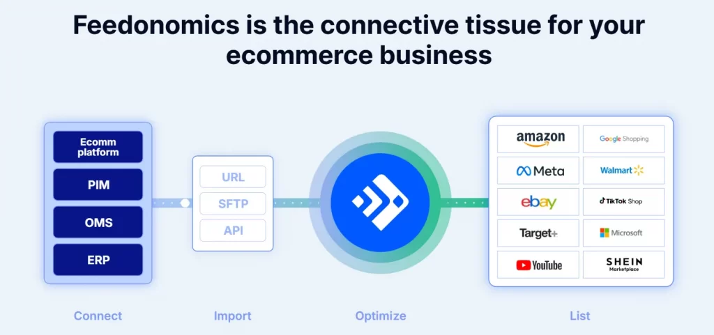 Feed management is the process of organizing, optimizing, and distributing product data feeds to various online platforms such as shopping engines, marketplaces, and advertising networks. These feeds contain essential product information – like titles, descriptions, prices, availability, and images, that are used to display listings or ads on platforms like Google Shopping, Facebook, Amazon, and eBay.